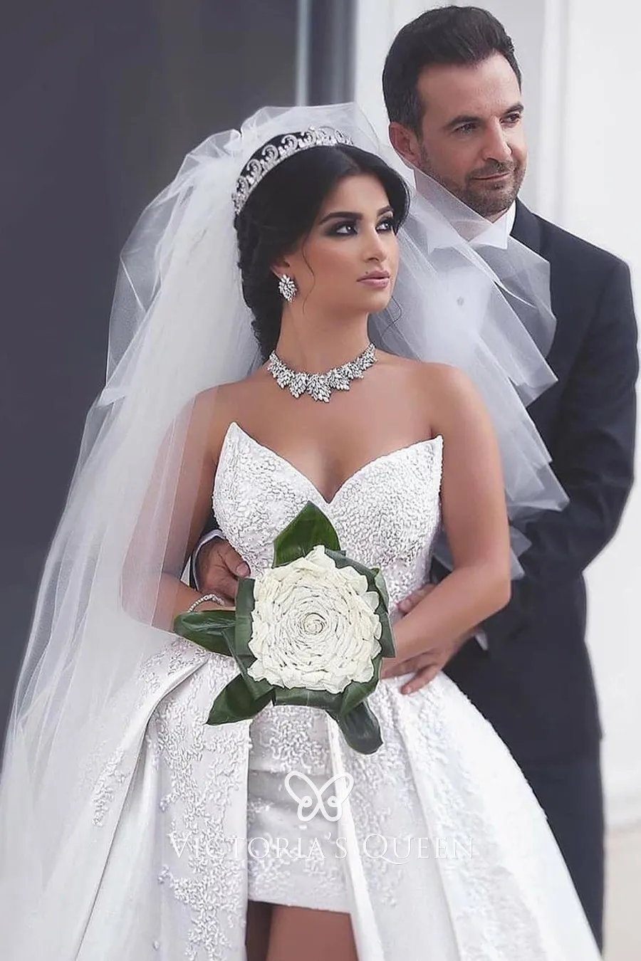 Gorgeous dresses gowns strapless wedding dress mermaid shrug for dresses gowns dresses wedding dress couture couture dresses haute wedding dresses on onewed. Bride wearing a strapless dress, veil and white gloves. Gorgeous customized inspired designer sweetheart neck lace trumpet wedding gown,lace appliqued bodice with feminine sweetheart neck,fitted hips with flowy tulle bottom,lace detailed the skirt,zipper up closure,chapel train. Exclusive chic strapless lace short women's cocktail dress milanoo wedding guest dress. Short wedding dresses 2021 lace strapless beaded asymmetrical white summer beach bridal dress.